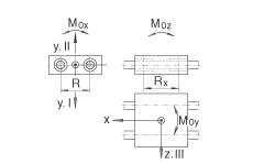- 基本額定載荷:載荷方向 Y I-II 當載荷均勻分布在四個直線球軸承上的基本額定載荷。 基本載荷和扭矩不能同時增加。